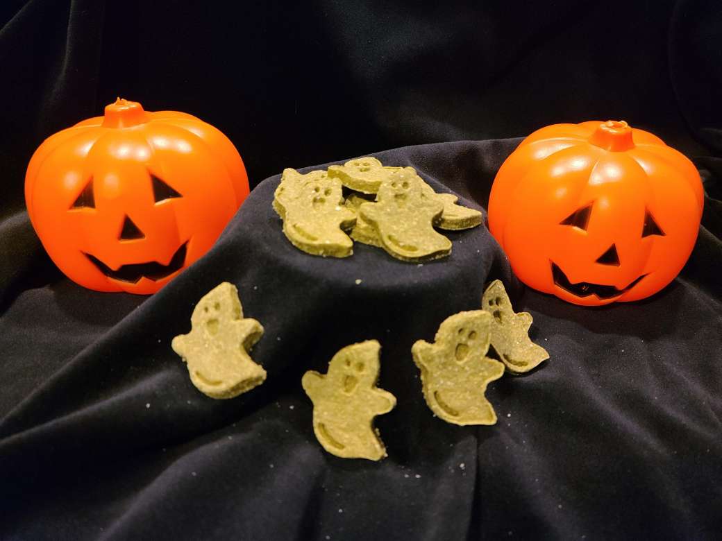 Glide into the ghostly green world of Garden Ghouls! Graciously garnished with garden-fresh romaine lettuce, piquant parsley, and a bewitching banana blend, these treats are a ghoulishly gourmet gift for your grazer. Ghost-shaped and glowing in a gorgeous green, they're a ghastly yet graceful snack. Entice your bunny with ethereal eats that will make them go hoppingly haunting for more!