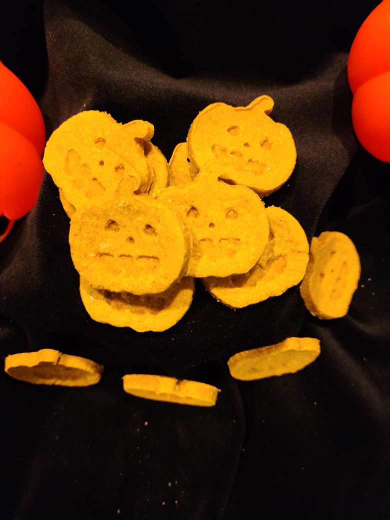 Binky with delight as you treat your bunny to bewitching Halloween Bunkins! Beautifully baked and brilliantly shaped like bright little jack-o-lanterns, these tantalizing treats team the traditional taste of tantalizing pumpkin with a tingling twist of ginger root. Perfectly portioned for your precious pet, Bunkins beckon bunnies to partake in the festive fun of the season. Beware, for once they bite into these bountiful goodies, they'll be bewitched by the burst of flavors bounding in every bite!