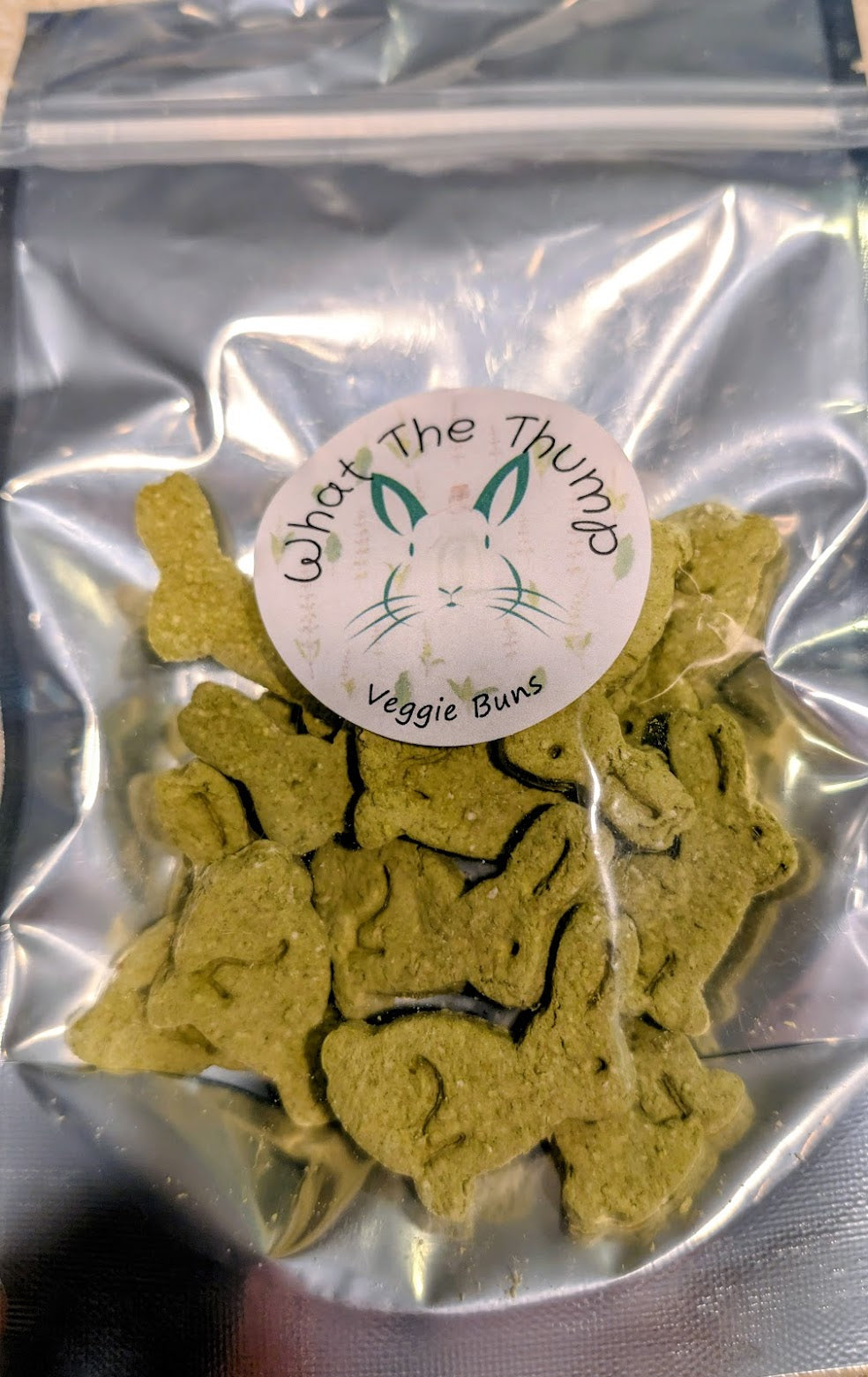 All of our treats are hand-made and therefore vary a bit in size, weight and ingredient contents. Treats can be broken into smaller pieces, but we take no responsibility for any thumping, or disapproving looks should your bunny find out!